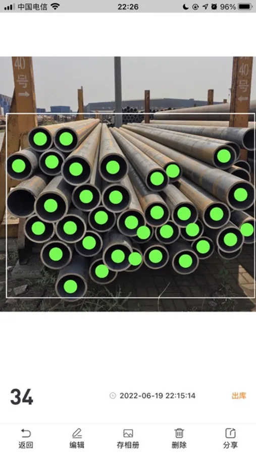 手机拍照1秒自动识别图片中的钢管数量,可以一次性识别1万根以下的数量,不用人工清点,又准又快!