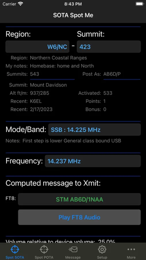 • Post a Self-Spot (SOTA or POTA) via HF radio (no internet, cellular, or satellite required!)