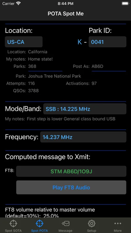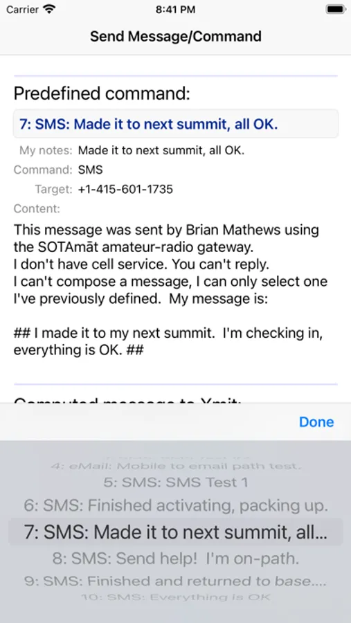 The app works by encoding your commands into a special message which is modulated using your iPhone or iPad for transmission over HF (using a built-in FT8 encoder, or use PSK31 or RTTY). Worldwide monitoring stations (skimmers) pick up your HF transmission and relay it to PSK Reporter, which forwards the message to the SOTAMĀT server for processing. SOTAMĀT then connects to the official SOTA or POTA or SMS services to carry out your instructions.