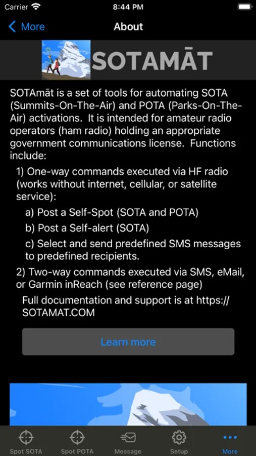 SOTAMĀT (pronounced "sota-mate") is for licensed amateur radio operators (ham radio) who want to self-spot from remote areas where there is no cellular service, no internet, and who don't have access to a satellite communicator. If you enjoy Summits-On-The-Air (SOTA) or Parks-On-The-Air (POTA) this app is for you!