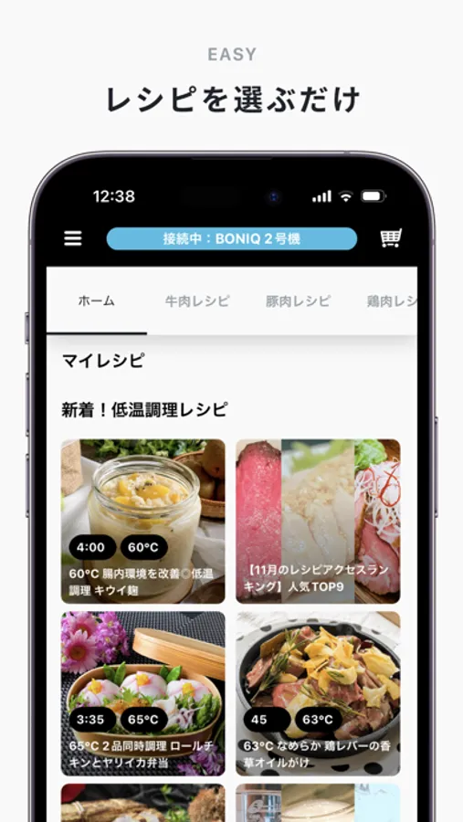 *レシピはインストールするだけでどなたでも閲覧出来ます。BONIQ Pro 2をお持ちでない方は低温調理レシピアプリとしてご利用ください。