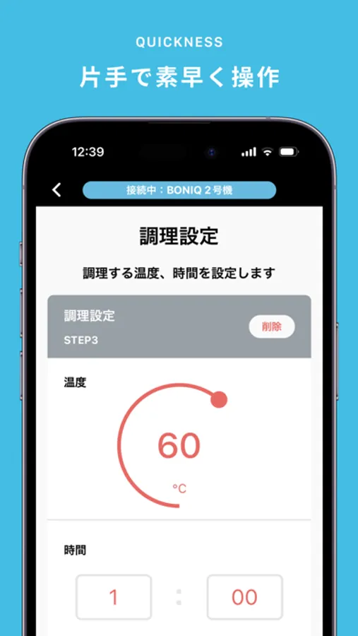 BONIQのコントロールはもちろん、低温調理レシピの検索から温度、調理時間の設定までBONIQアプリ一つでお手のもの!