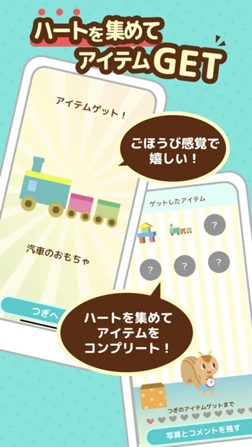 ご褒美のハートを集めるとアイテムがもらえます。