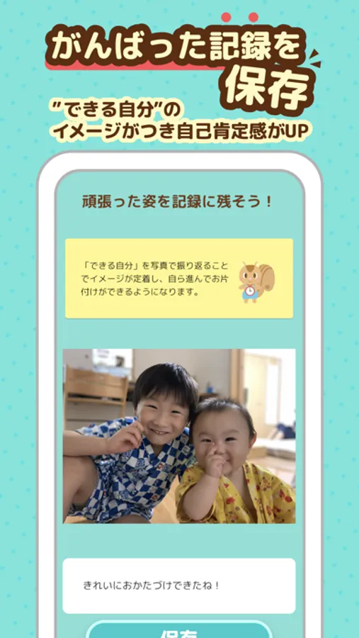 キャラクターが褒めてくれたり、達成した記録が増えたりする経験を通じて、子どもの自己肯定感を育む効果もあります。