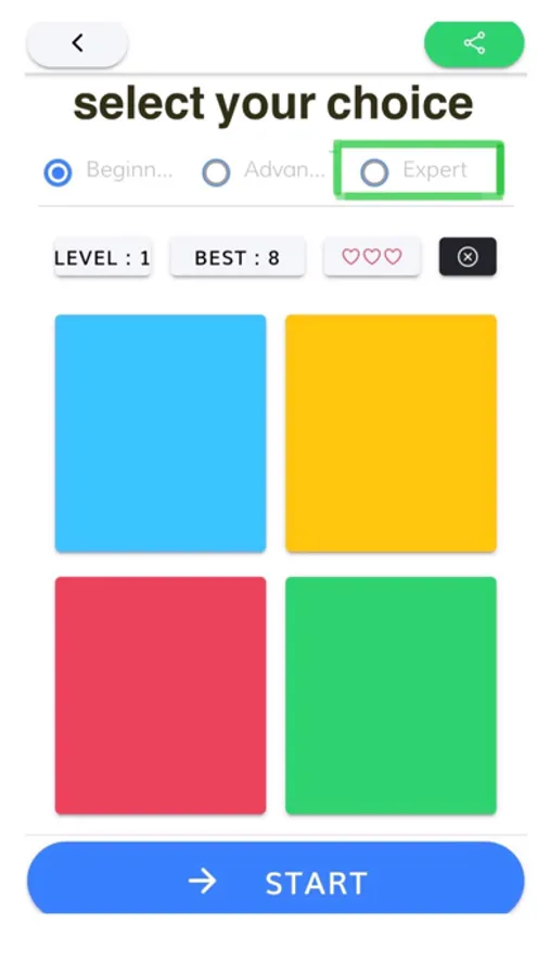 Difficulty - Selecting difficulty will affect level and interval time. more difficulty less interval time.