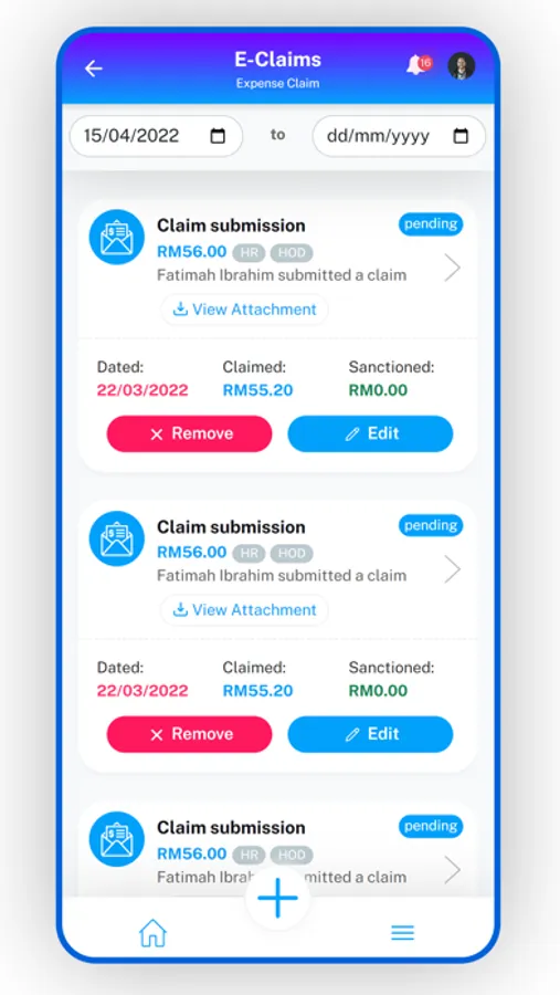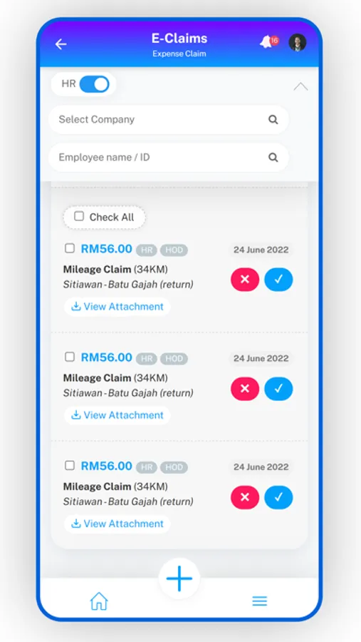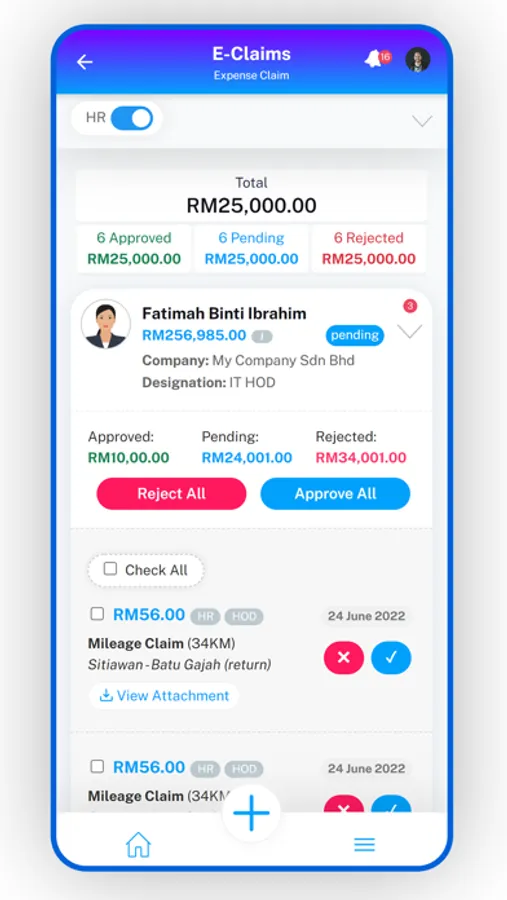 - Login as Approver to view summary of claims filed by subordinate and approve/disapprove their claims.