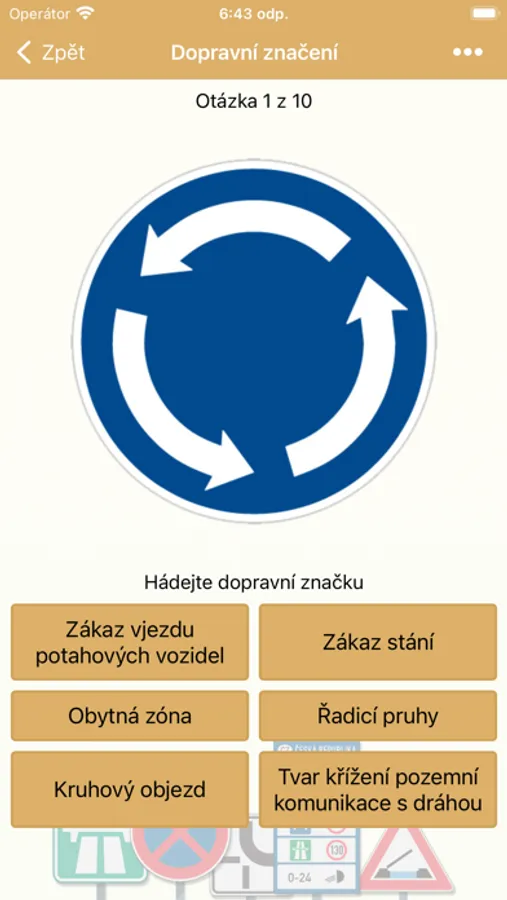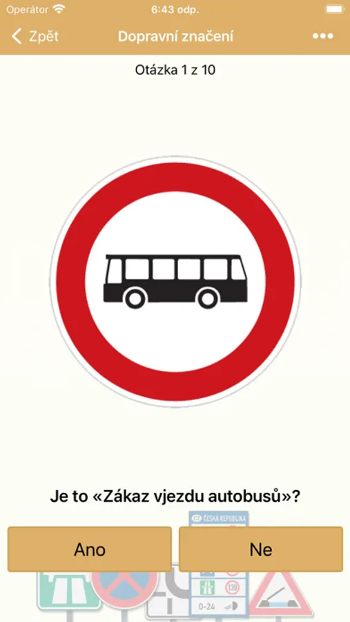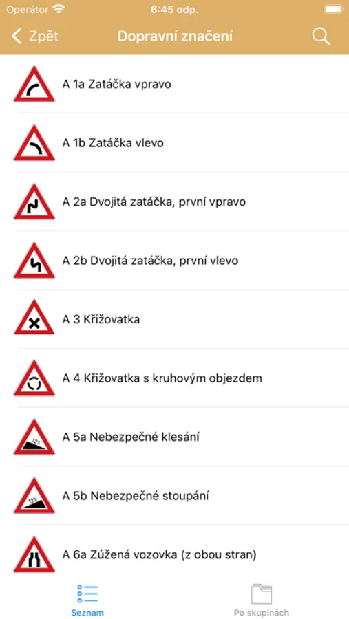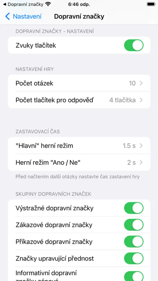 * Výběr studovaných kategorií dopravních značek. Pomocí této funkce můžete trénovat pouze dopravní značky, které Vás zajímají.