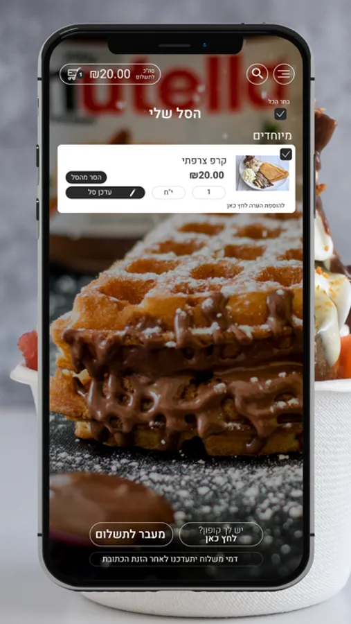 גלידות טריות המיוצרות במקום, יוגורט, וופל בלגי, קרפים ועוד מתוקים.