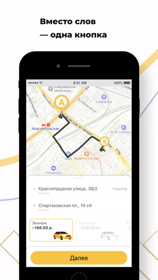 Адрес подачи определится автоматически. Вам остается указать, куда вы поедете. Используйте шаблоны с адресами и настройками, которыми чаще всего пользуетесь, чтобы заказать такси в пару кликов.