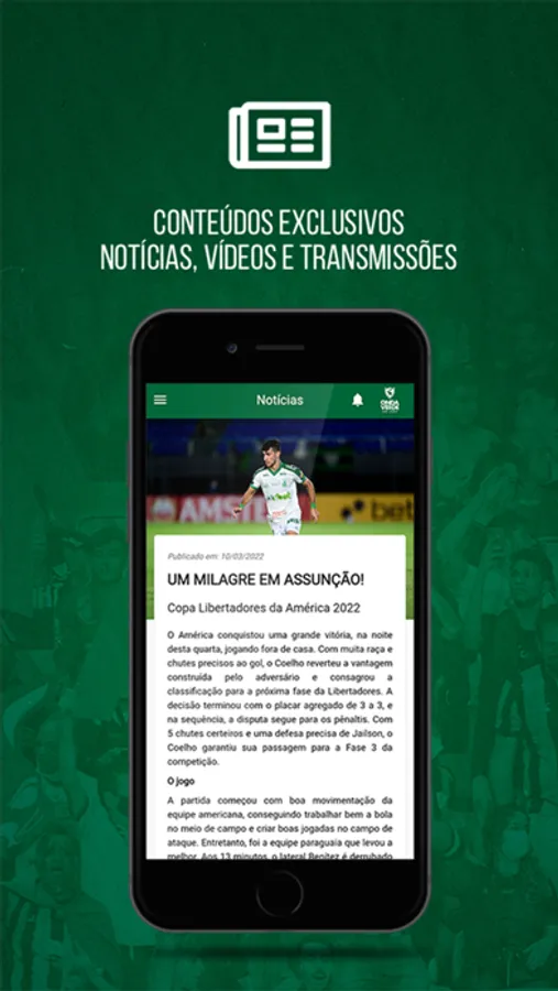 Só tem vantagens e incríveis experiências quem faz parte do Sócio Onda Verde. Só quem é sócio-torcedor do América tem acesso aos conteúdos exclusivos do APP oficial do programa! Confira: