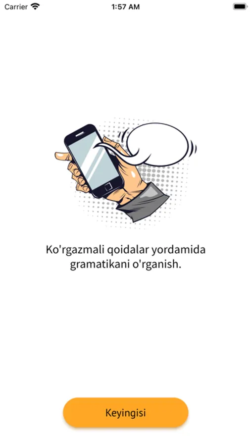 Mashg’ulotning ikkinchi qismida siz yangi grammatik qoida bilan tanishasiz. Buning uchun IZI sizga gaplar tuzilishini bloklar ko'rinishida beradi. Bu sizga gap tuzilishini oson eslab qolishga yordam beradi. Shuningdek shu qismning o'zida berilgan mavzuni mustahkamlash uchun sizga bir nechta oddiy mashqlarni bajarish taklif etiladi.