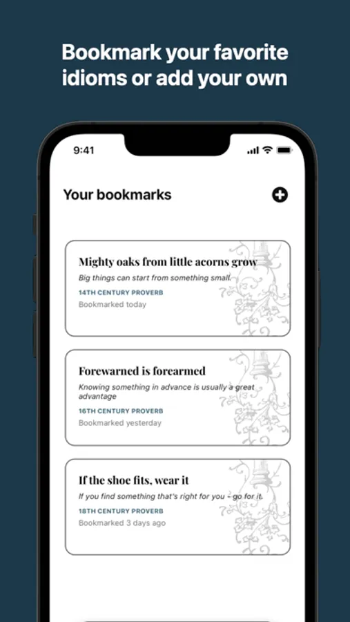 Acorn Idioms gives you a new idiom each day that you can practice and use in your daily conversations. If you want to keep it for reference you can bookmark it and build out your own little library of idioms. If you come across a new interesting idiom you can also add a custom bookmark to your library.