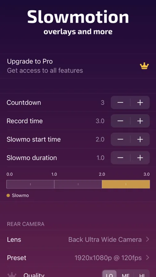- Record at 720p, 1080p or 4k. From 60 to 240fps