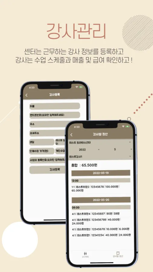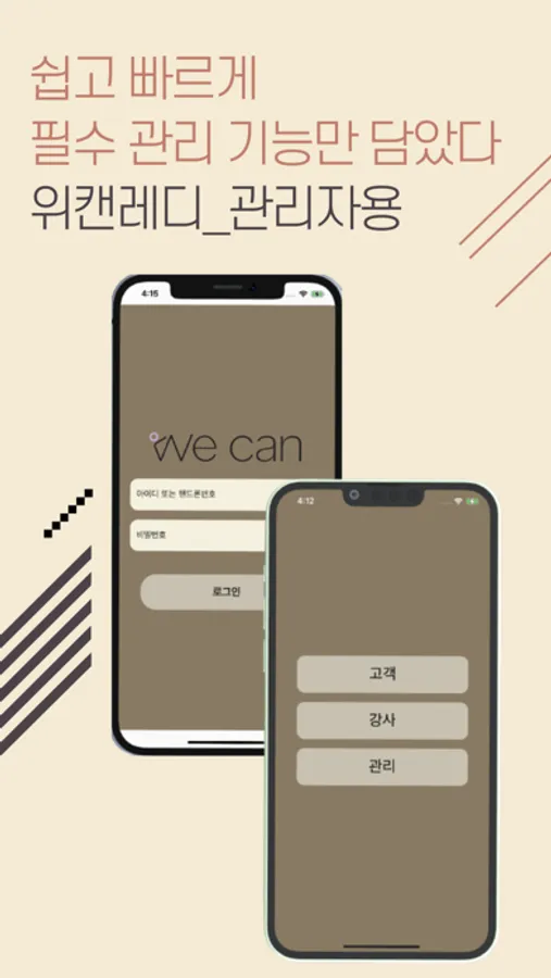 저희 위캔 필라테스는 센터의 회원관리, 강사관리, 스케줄관리, 매출관리 등 센터 관리에 필요한 서비스를 제공하며, 강사들을 위한 기능을 제공합니다.