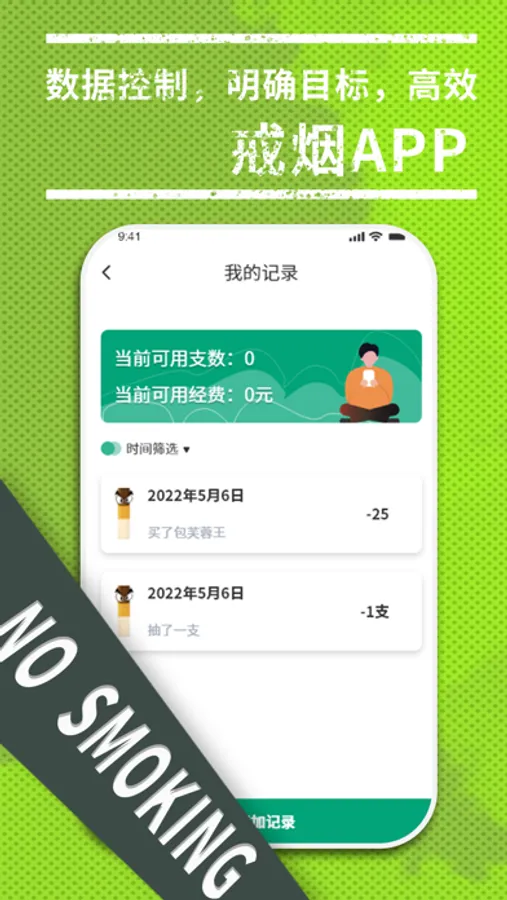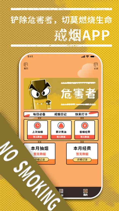 一款高效的抽烟、戒烟记录APP可以清晰的记录您每天的吸烟情况。并通过香烟的单价及成分含量帮您自动统计您的吸烟支出情况。有效管理您的今日吸烟,今日抽烟,今日戒烟情况,不用别人念你自己就可以督促自己戒烟!