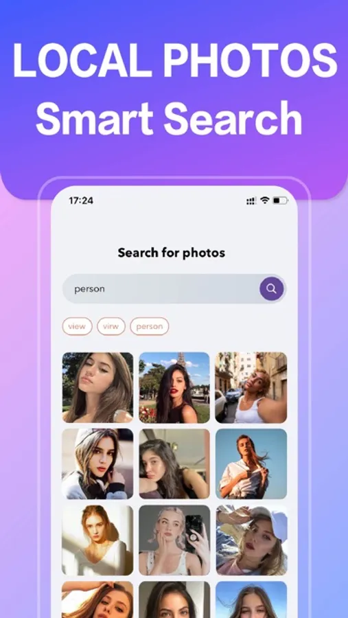 - Quickly find local photos by keyword in app.(e.g. `person`, `cat`).