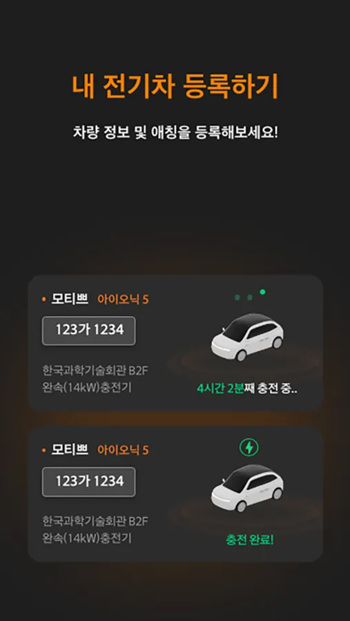 - 내 전기차 정보와 애칭을 등록할 수 있어요