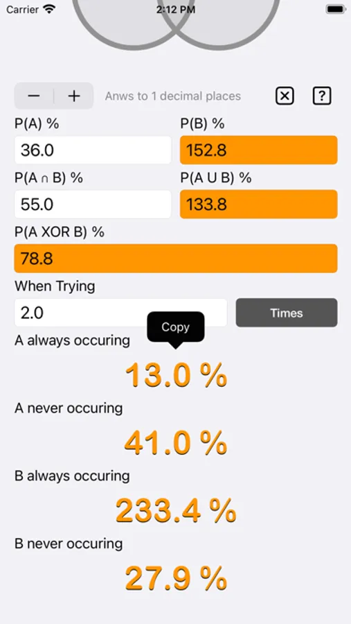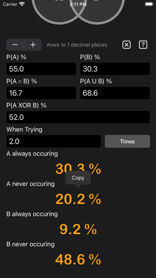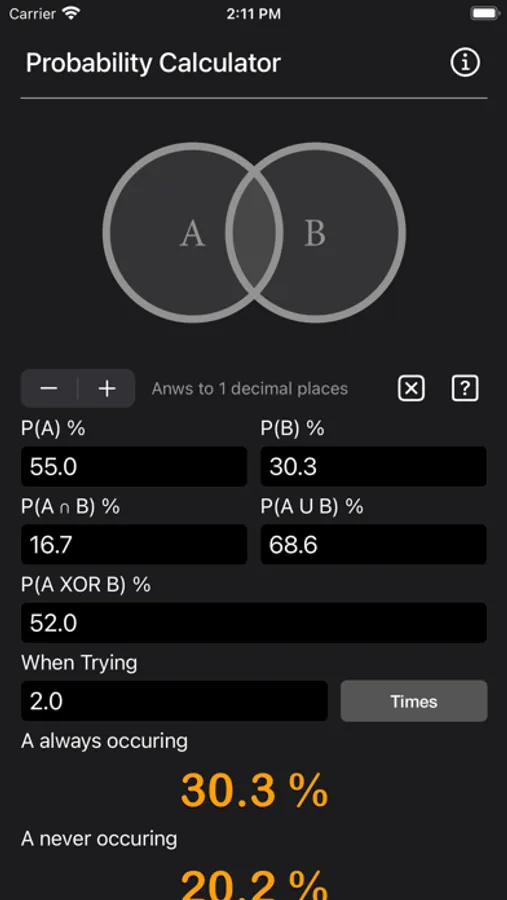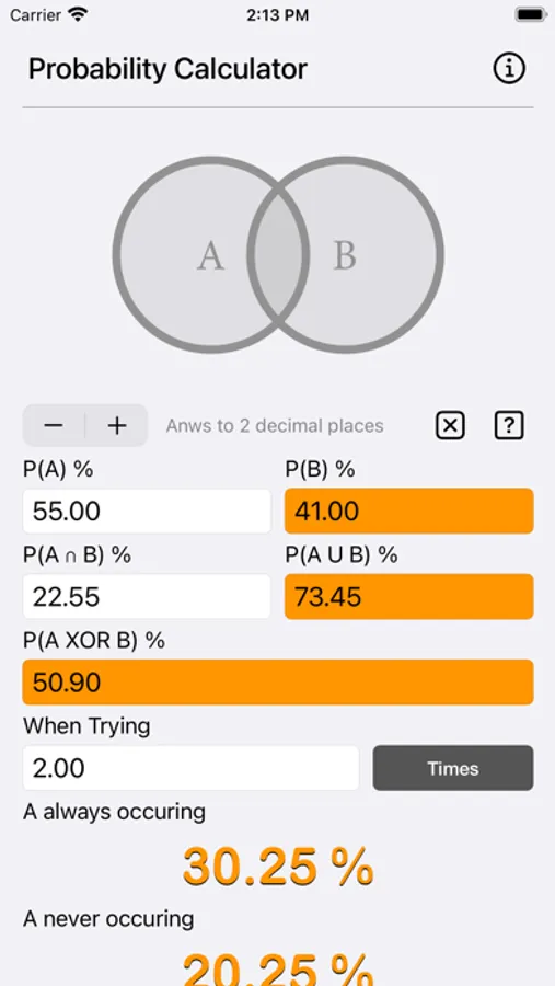 Exclusive OR of A and B P(A XOR B) = P(A) + P(B) - 2 X P(A ∩ B).