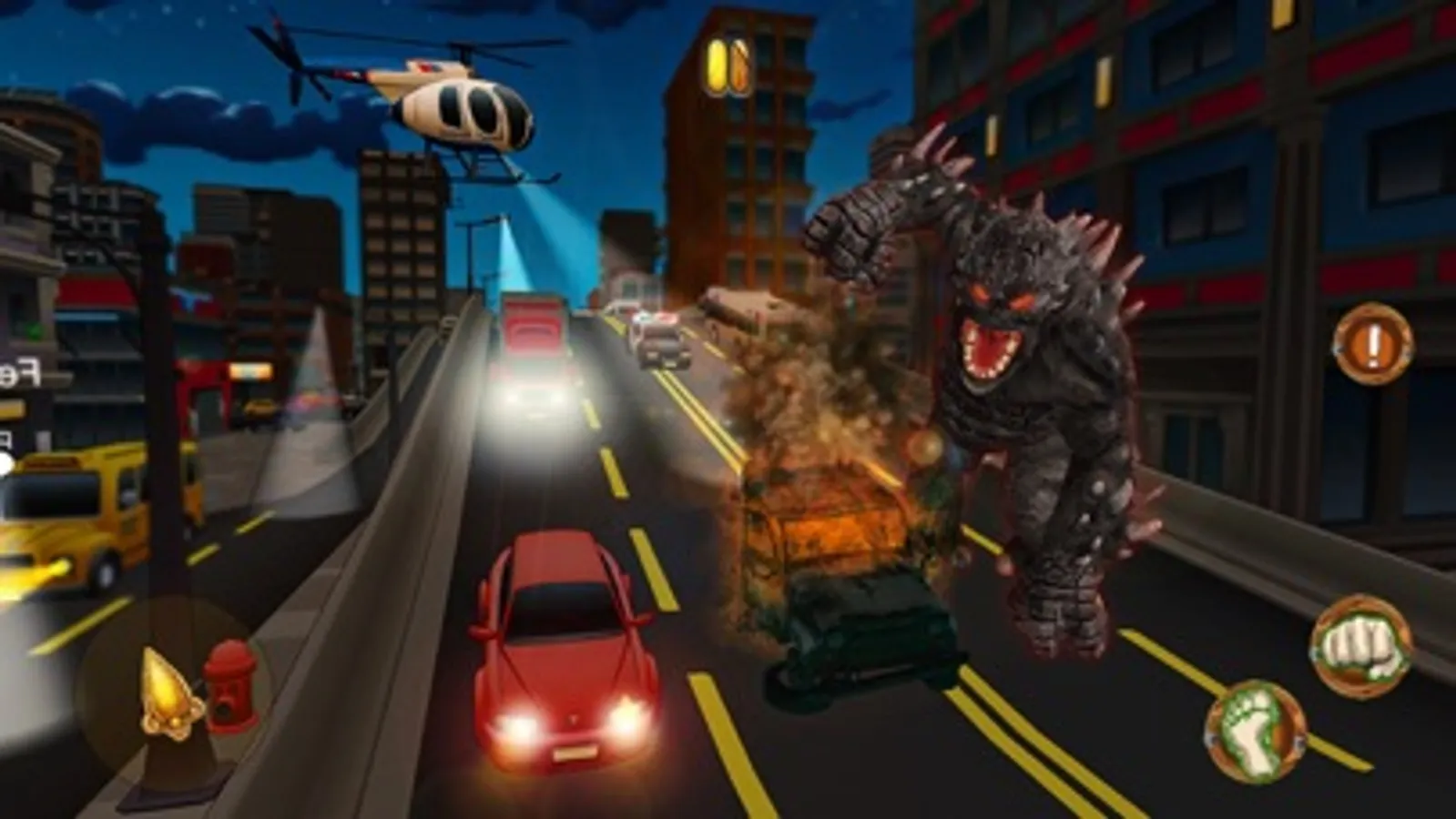 Get around the cutting edge city loaded with vehicles, high rises and rushing people. Release your fury - flood the city roads with fire, consume, pound and annihilate of this home of inept skin monkeys! Be a genuine old dread stirred in tissue and power!