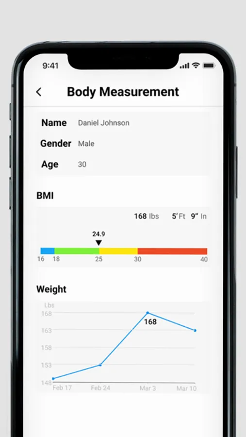 - Track the individuals' body stats including weight measurement, and exercises records instantly.