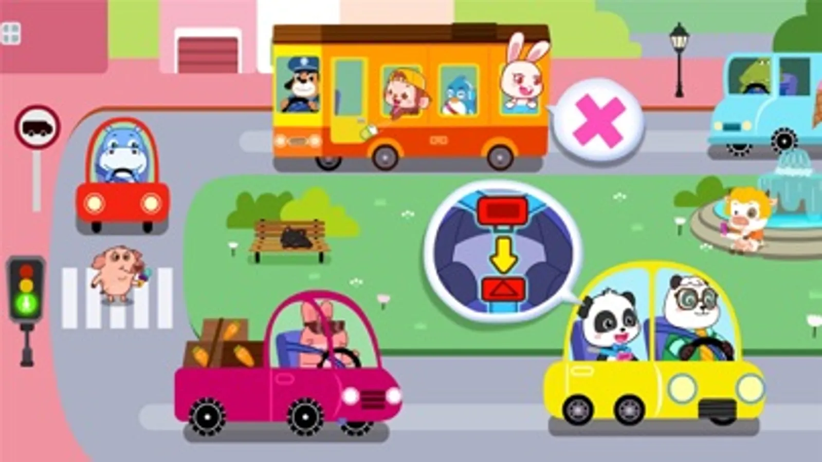 Kids are required to fasten the seat belt for baby panda and his friends. They can also enjoy the pleasure of traveling somewhere in an automobile.