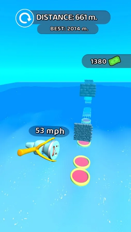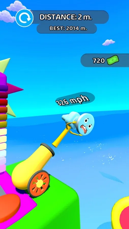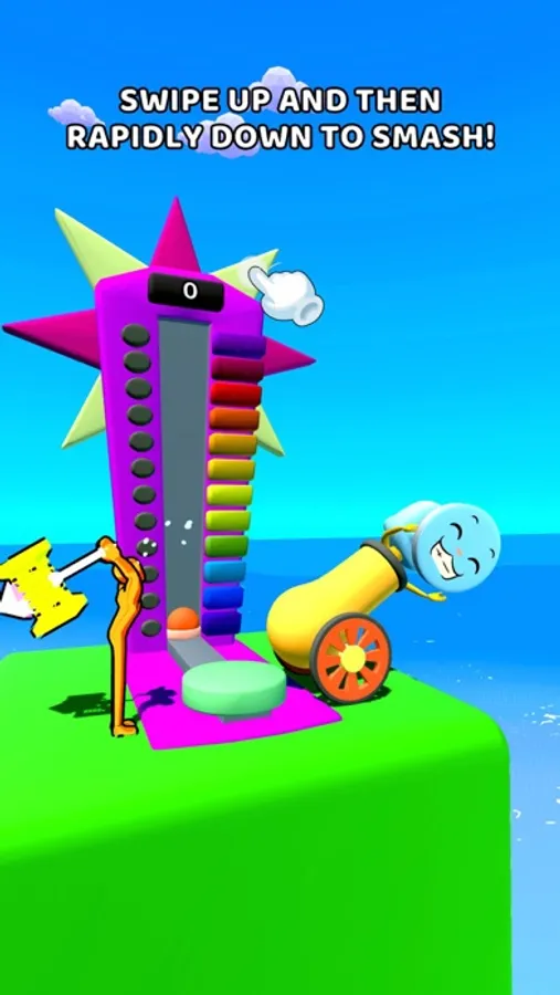 STRIKE the sledgehammer HARD, and launch yourself from a cannon with mind-blowing power! Soar through the skies, and dive fast onto trampolines to go even further!