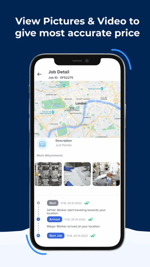 You can use our in app chat, voice & video call to get more detail of the site and job so you can arrive fully prepared and hit the ground running avoiding unnecessary time wasted fetching tools, parts and renegotiation on price.