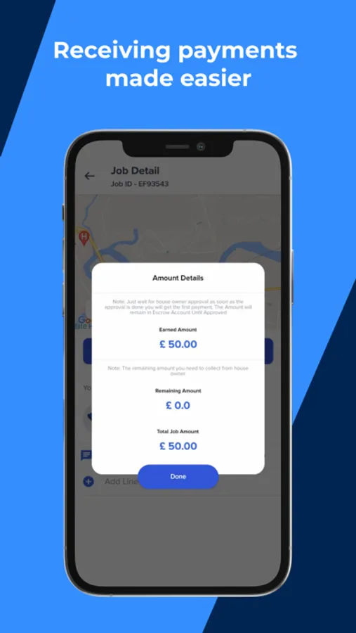 We make sure your payment is secure by depositing the agreed deposit amount in a secure escrow account before the job starts and released to you once the job is fully complete.