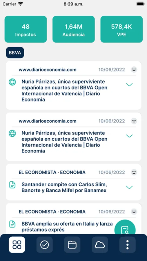De las noticias de medios digitales se dispone de la captura de la noticia incluida una cabecera de datos que incorpora los de valor económico estimado y audiencia y también enlaza con la web de la noticia original.