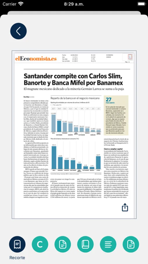 De la prensa escrita se dispone de la noticia extraída del medio que incluye una cabecera con todos los datos de la noticia que incorpora los de valor económico estimado y audiencia o de la página completa del medio en que aparece.