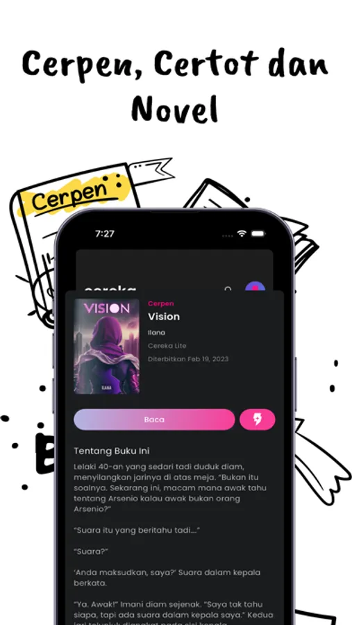Cereka menghimpunkan pelbagai novel dibawah genre fiksyen sains dan seram, dibawah satu aplikasi. Anda boleh membaca ia secara percuma, atau turut melanggan pada harga langganan bulanan RM5 untuk menikmati akses premium dan akses kepada sejumlah novel dan penerbitan lebih awal berbanding pengguna lain.