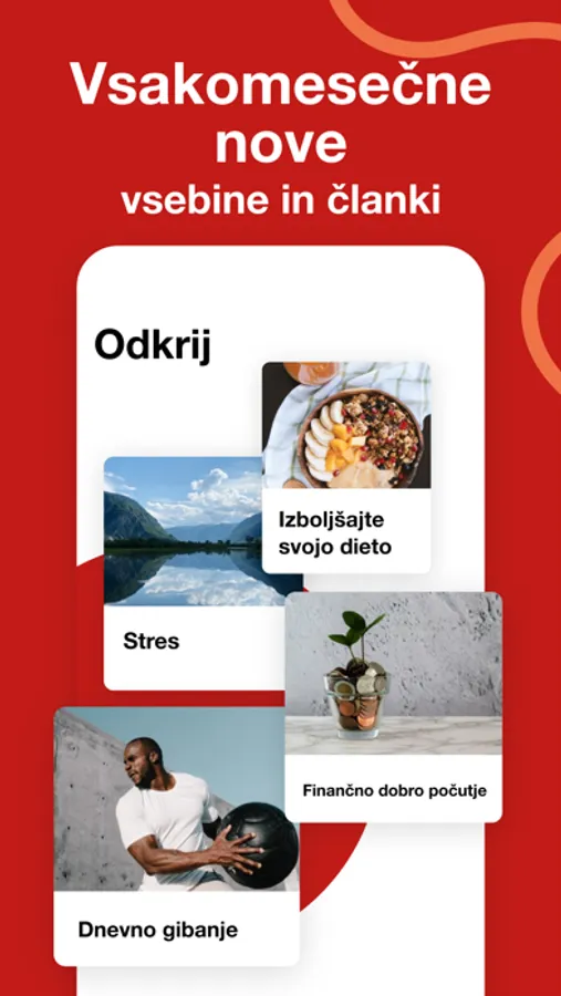 Od člankov in strokovnih nasvetov do zdravih receptov, zabavnih kvizov in navdihujočih zgodb – v aplikaciji Generali Zame boste našli vsebino, ki jo potrebujete za motivacijo. Poleg video vodenih vadb, meditacijskih vaj in podkastov vam bodo na voljo tudi vsebine, prilagojene vašim ciljem, ki vam bodo pomagale pri doseganju bolj zdravega življenjskega sloga.