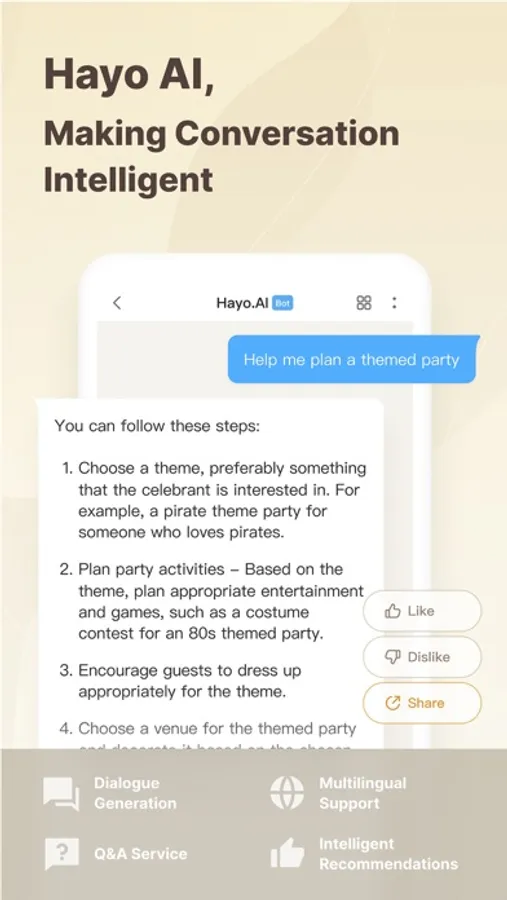 Hayo is a powerful app that combines AI chat,AI face swap, AI art creation, AI tool recommendations, AI news, and technological innovation exchange, aiming to provide you with a highly creative and convenient AI experience! As a professional intelligent mobile assistant, Hayo leads you to explore the fascinating world of AI, inspiring the limitless potential of future technology. Here, only endless imagination exists, with no boundaries!