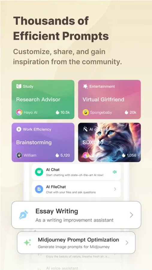 Hayo supports the latest Stable Diffusion XL technology, granting it a powerful ability to generate high-quality images of any art style. With just simple prompts and descriptions, Hayo can produce intricate, complex, and beautiful images. Moreover, it can generate high-resolution images, with colors more vibrant and accurate, and handles lighting, shadows and arrangement of objects in the image impressively. Even complex texts and hand contents can be easily managed. Whether you are a professional designer, an artist, or an amateur hobbyist, Hayo can help you create highly creative works in a short time.