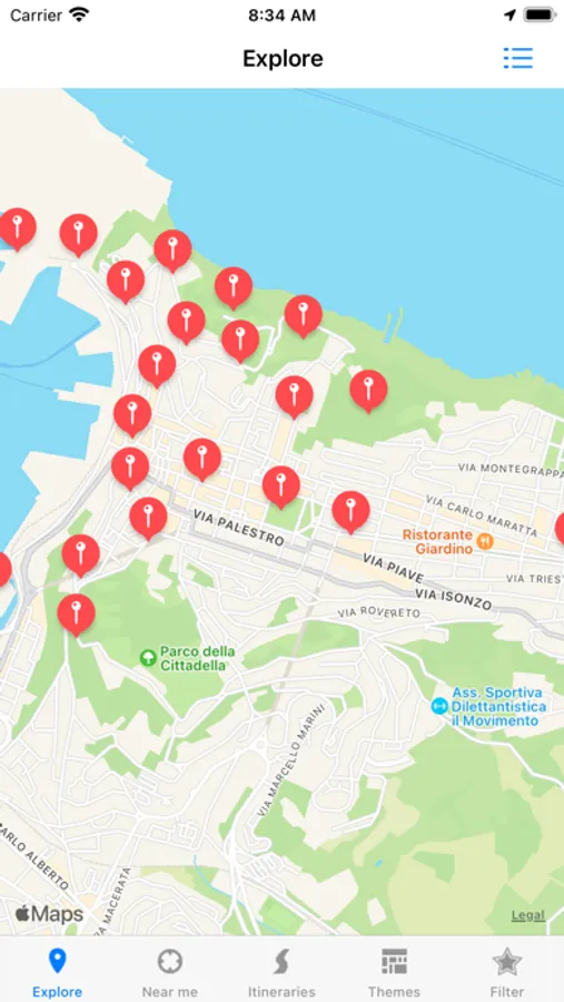 Step by step this app guides you through the city map. You can visualise the points of interest, unmissable monuments and you can also add them to your route at the last minute as the app notifies you of anything of interest close to your location.
