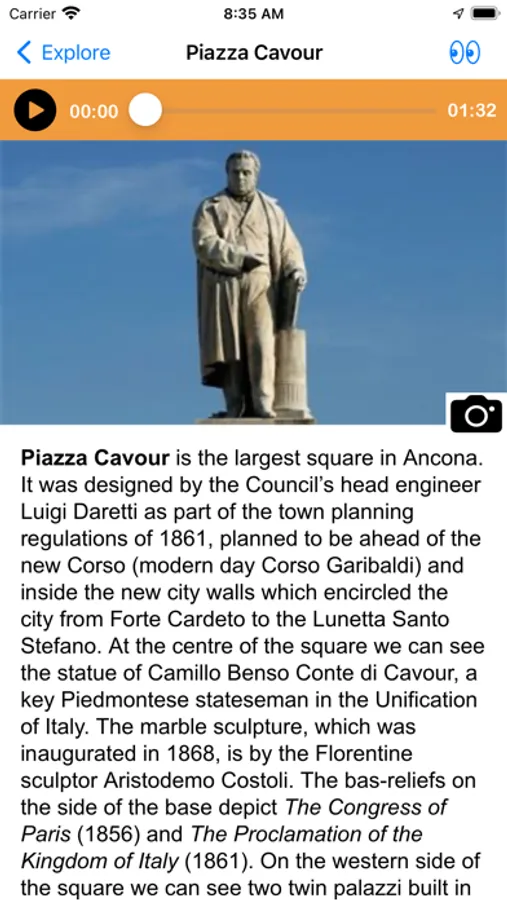 According to where you are, you can choose what to see and listen to a description of the places and buildings which you are interested in. You can fully explore their history and their artistic aspects. In addition to the audio narration, you have images and useful information at your disposal. Whether your visit is short or long, this app helps you plan it and ensures it will became a satisfying and rewarding stay.