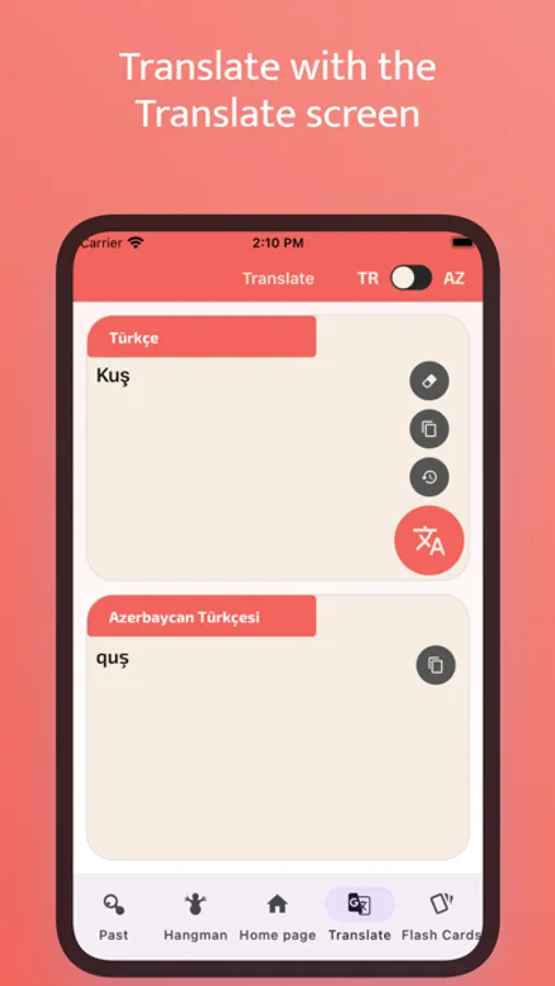 TURAZ is a two-way dictionary application where you can translate words from Turkish to Azerbaijani or from Azerbaijani to Turkish without the need for an internet connection. The application has a useful and functional interface design, and the search results are presented very quickly. You can also see previous searches in your search history and translate again.