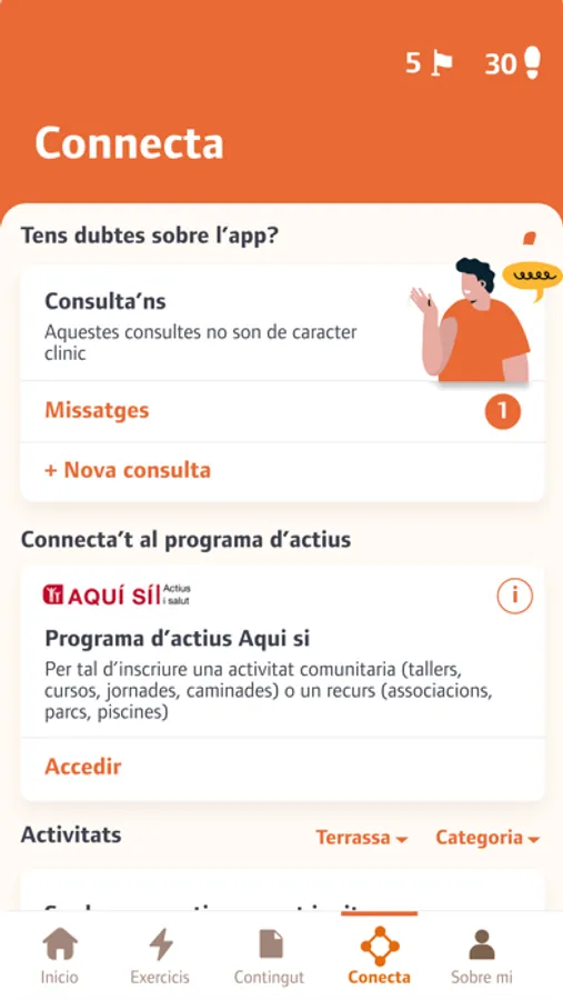 L'App s'integra amb l'aplicació de salut (HealthKit) per llegir i rastrejar les dades dels passos per automatitzar el recompte de passos diaris.
