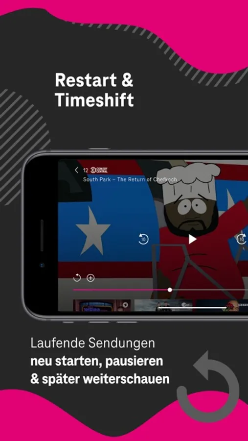 • Mit Restart & Timeshift laufende TV-Sendungen neu starten, pausieren & später weiterschauen.