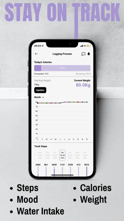 there’s more…We want to give you the best chance of success, by including everything in our power to support you. You will have the chance to track your weight, tasks, goals, steps, mood & water intake. Be on top of your progress to ensure you are doing everything to reach the goals that you have set!