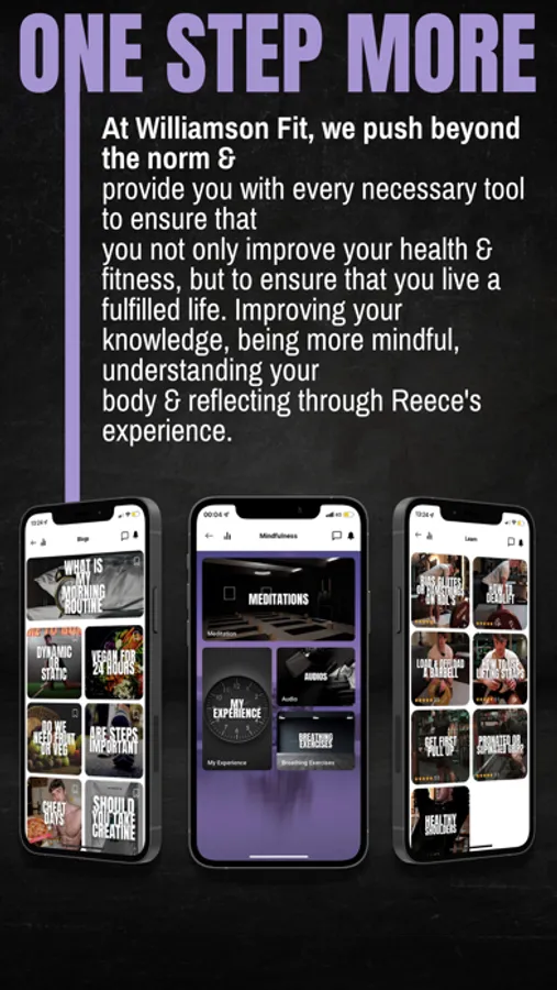 Like no other fitness app, Williamson Fit strives to teach you as much as possible whilst making all of the progress as possible. It’s a win win situation. Learn from his experience through life, his methods of training, tips within the industry & have full access to his podcast. Not only learn from Reece, you will be able to learn from the rest of the community & create a bond that lasts forever.