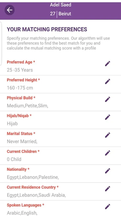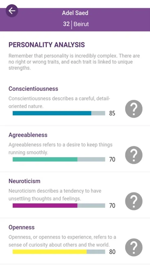Comprehensive user profile that cover every aspect relevant to the selection of future partner.