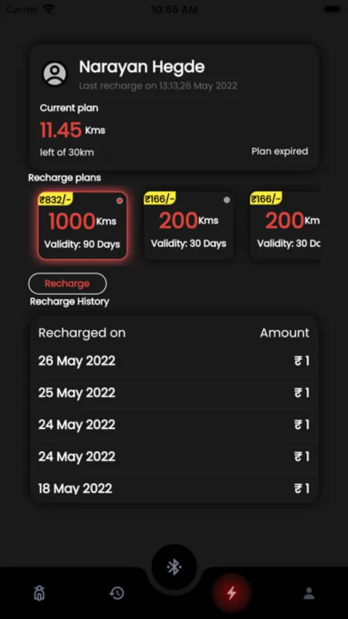 Manage your battery subscription and view recharge history. Recharge and track your subscription kilometers.