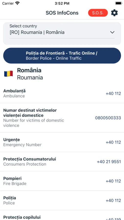 SOS InfoCons, the application that should not be missing from your phone! Whether you are in your country, visiting or for a professional purpose in another country, SOS InfoCons is indispensable for you. In times of emergency, when every moment counts, it's helpful to have all the emergency numbers you need in one place! The process of searching for emergency numbers on various web pages can be time consuming, and in times of crisis this is the most valuable!
