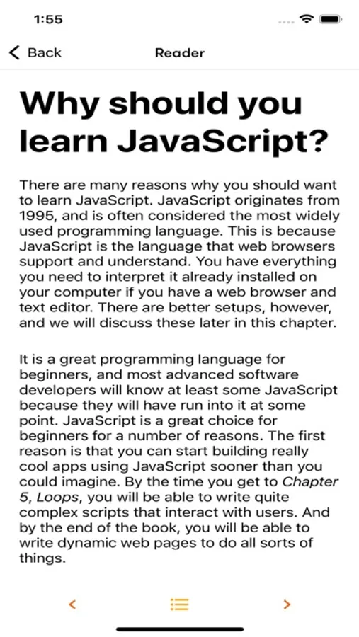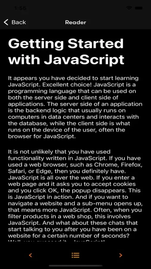 Access all the books and videos included in your subscription, and customize the reading experience by enabling dark mode or altering the font size from the settings page.