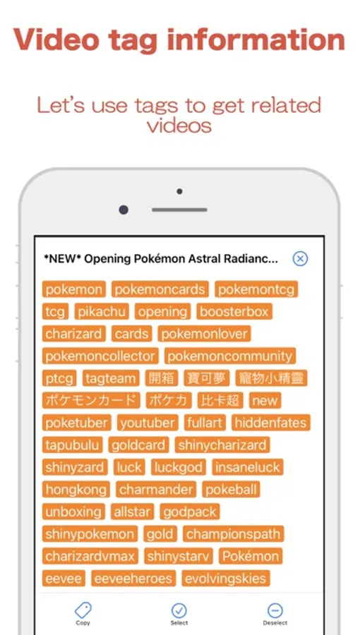 It is an application that displays the tag of the video and allows you to copy and paste.