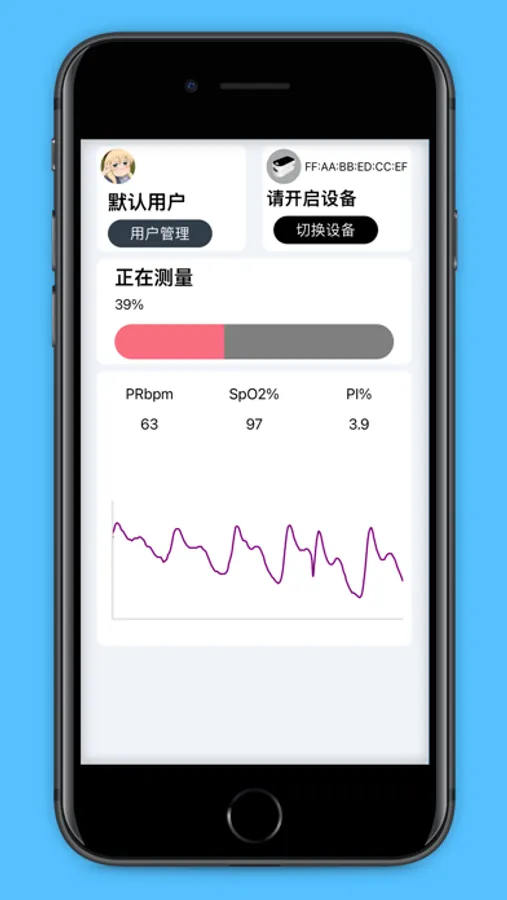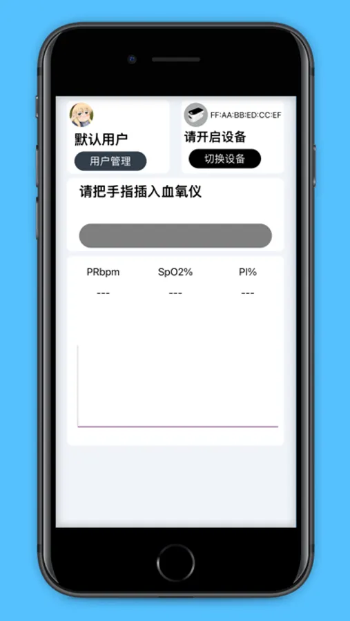 用户可以使用这个App连接到血氧仪,来查看血氧的各项参数。