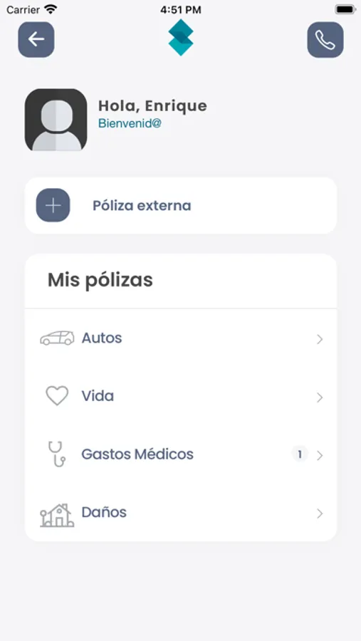 Aplicación para consultar tus pólizas, estar al pendiente de tus vencimientos y realizar llamadas de emergencia.