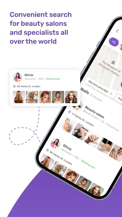Check out beauty salons and specialists in your area, compare their services and prices, choose the ones you like the most, and book an appointment online in just a few quick and easy steps.