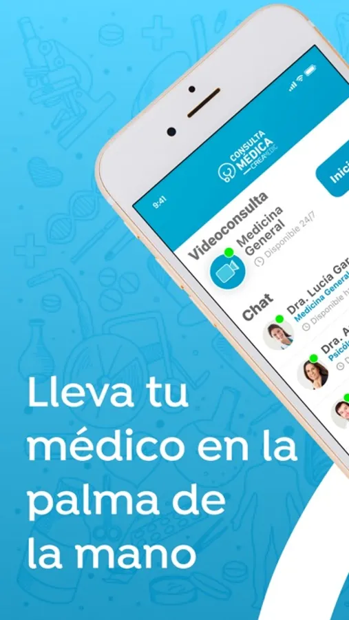 Comienza a explorar todas las posibilidades de la app y recibe una respuesta inmediata, en menos de 2 minutos encontrarás a un doctor en línea listo para escucharte y atender tus síntomas. Puedes elegir entre médicos generales o especialistas como dermatólogos, ginecólogos, pediatras, nutriólogos, entre muchos otros.